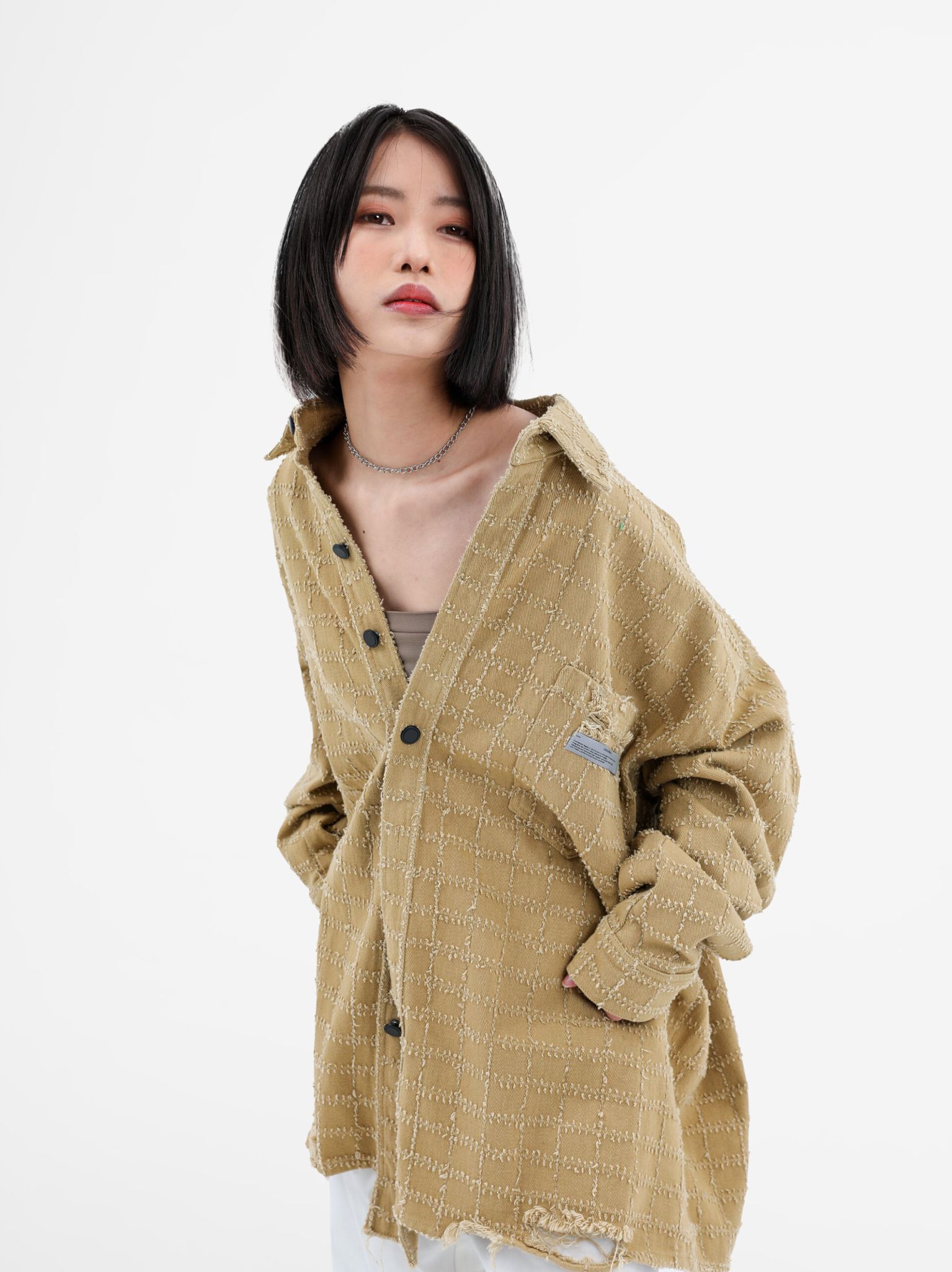 Oversized Distressed Button Down Shirt